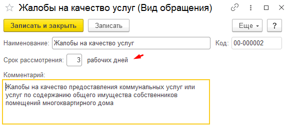 Для вида обращения можно указать срок рассмотрения, чтобы контролировать своевременную обработку обращений: