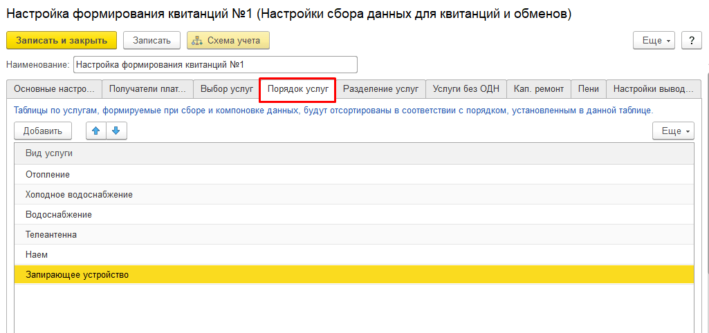 На данной закладке определяется список услуг, которые будут выводиться в квитанции. Возможны следующие варианты: