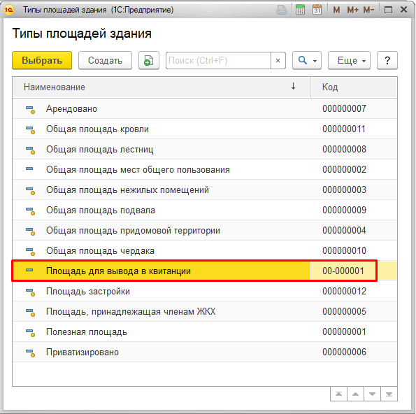Значение данной площади указывается в справочнике «Здания» на закладке «Площади» в табличной части: