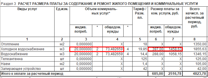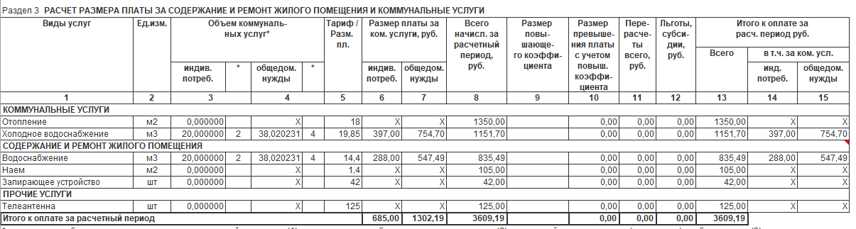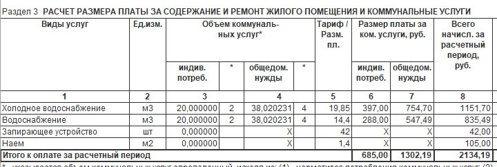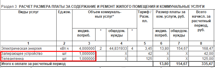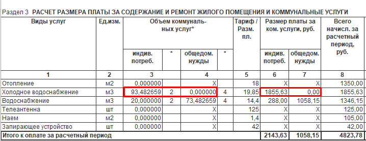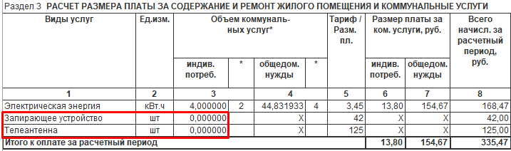 Например, если флаг не установлен, для услуг, рассчитываемых не по счетчику, в колонке с индивидуальным потреблением будет выводиться 0: