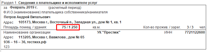 Вместо общей площади выводить расчетную площадь – флажок позволяет вывести в квитанции расчетные площади помещений и зданий вместо общих площадей. Необходимость вывода другой площади может возникнуть, например, если в программу ещё не введены все помещения, а площадь здания нужно выводить общую с учетом площадей всех помещений.
