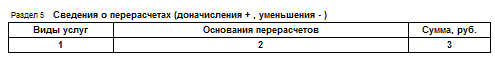 Корректировок за период не было, но в квитанции всё равно будет выводиться раздел 5 «Сведения о перерасчетах», но данных там не будет: