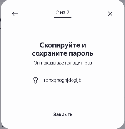 Нажимаем Далее. Будет автоматически сгенерирован специальный пароль приложения из 16 символов.