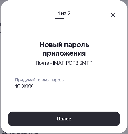 Скопируйте этот пароль и используйте его при настройке учетной записи электронной почты в программе 1С.
