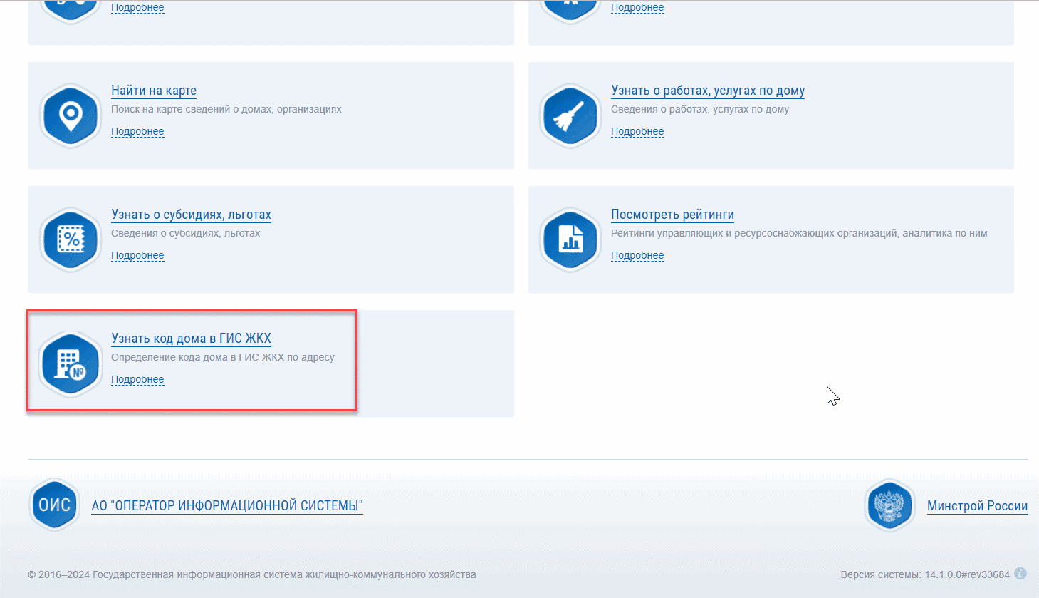 Перейдите по ссылке «Узнать код дома в ГИС ЖКХ»: