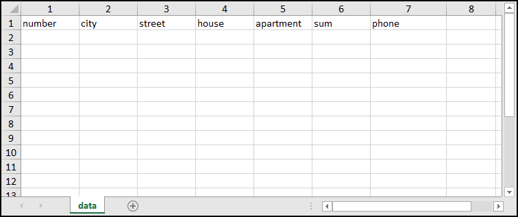 Для этого необходимо создать файл в Excel в формате *.xlsx.