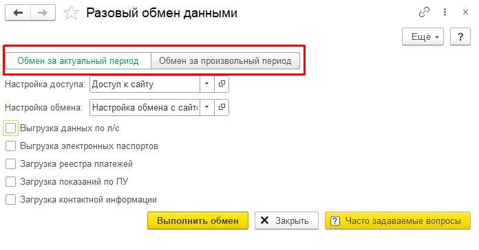 При обмене за актуальный период можно выполнять как выгрузку, так и загрузку данных (показаний, платежей и т.д)