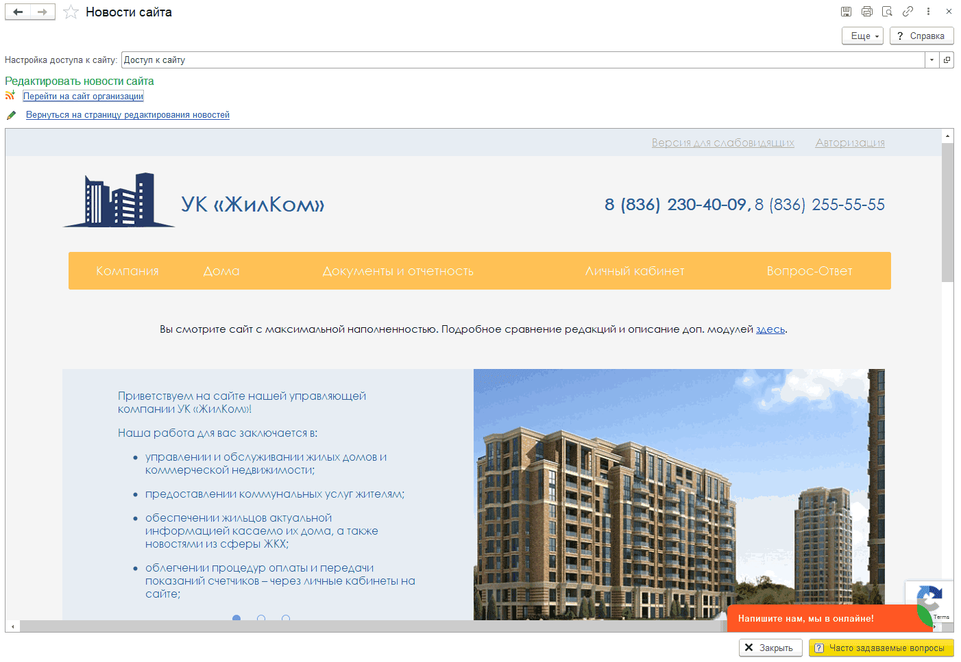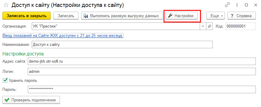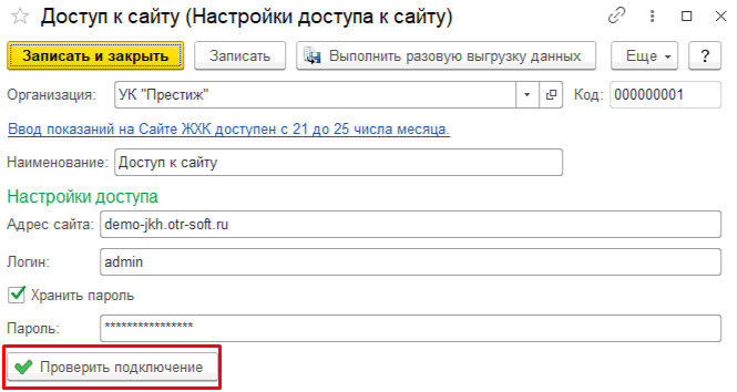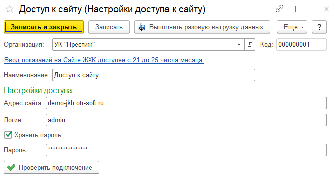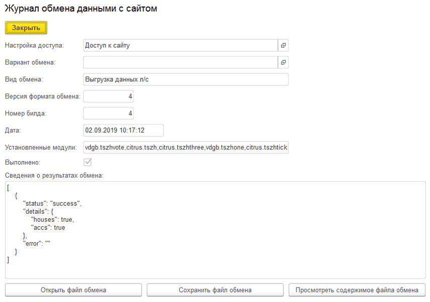На этом настройка обмена данных с сайтом завершена. Далее нужно предоставить доступы к личным кабинетам владельцам лицевых счетов.