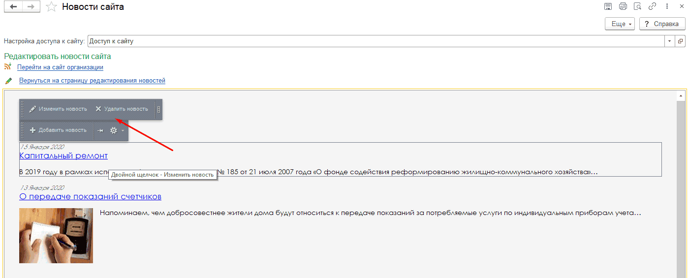 Перейдите в меню «Интеграция с сайтом ЖКХ → Новости сайта».