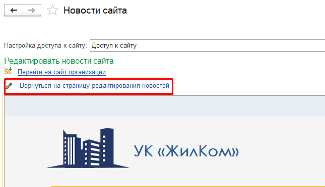 «Вернуться на страницу редактирования новостей» – предназначена для перехода на страницу редактирования новостей сайта:
