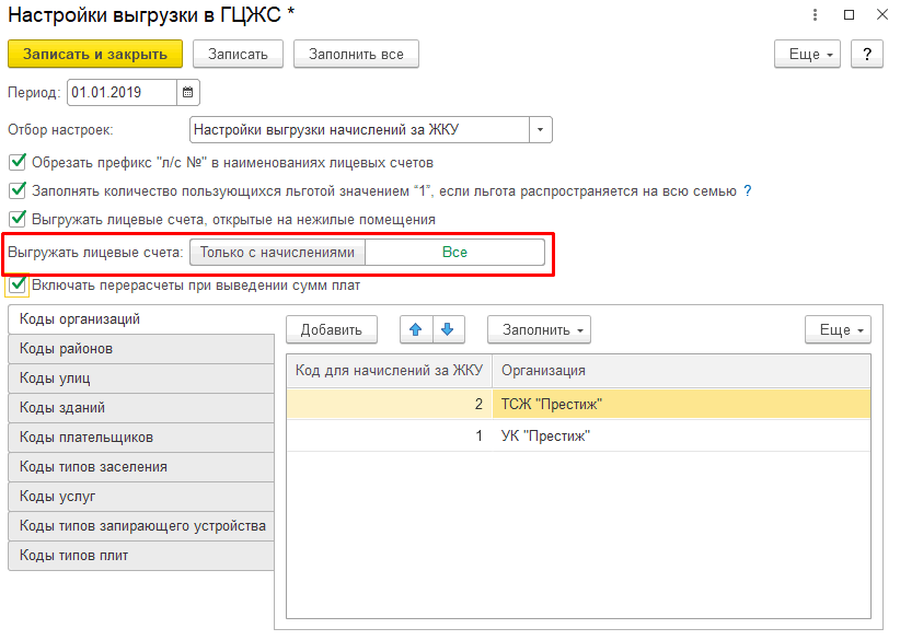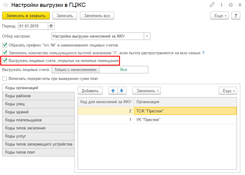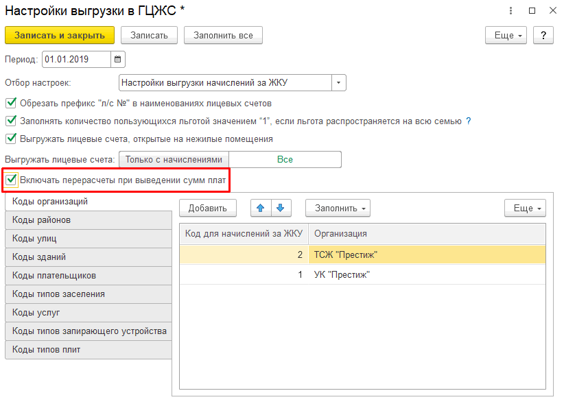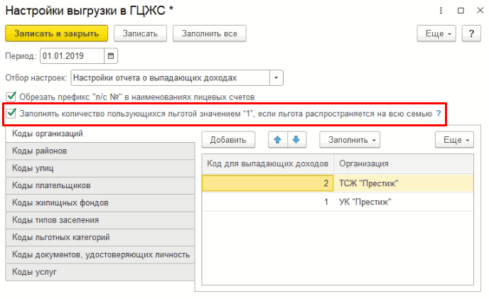 В программе 1С: Учет в управляющих компаниях ЖКХ, ТСЖ и ЖСК реализованы «Отчет о выпадающих доходах» и «Отчет о начислениях за ЖКУ» для выгрузки в ГЦЖС, доступные в меню «Льготы и скидки – Выгрузка в ГЦЖС»: