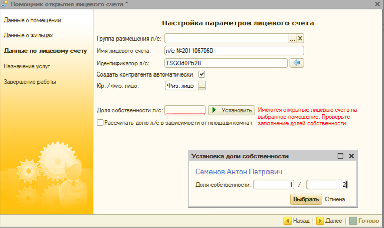 При нажатии кнопки «Готово» будет создан новый лицевой счет.