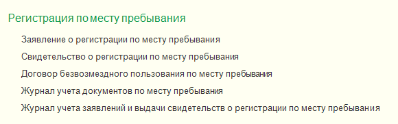 На основании «Заявления» можно создать документы «Свидетельство о регистрации по месту жительства», «Договор безвозмездного пользования по месту жительства» и «Изменение лицевого счета».