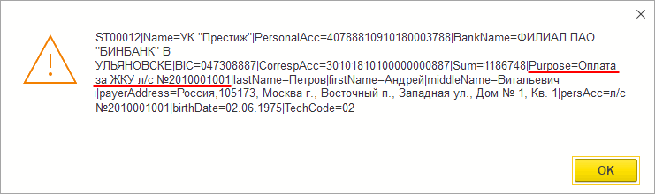 В QR коде в квитанции будет выводиться наименование лицевого счета в параметре «Purpose».