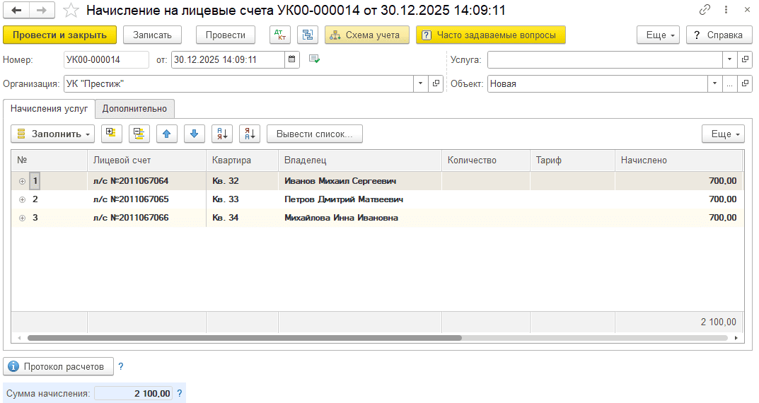 Начислены услуги в декабре 2025: