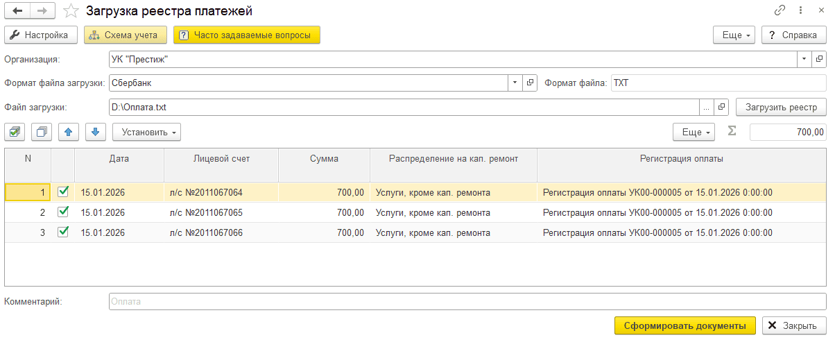 Шаг 2. Загрузите реестр платежей из банка с расшифровкой сумм по каждому плательщику.