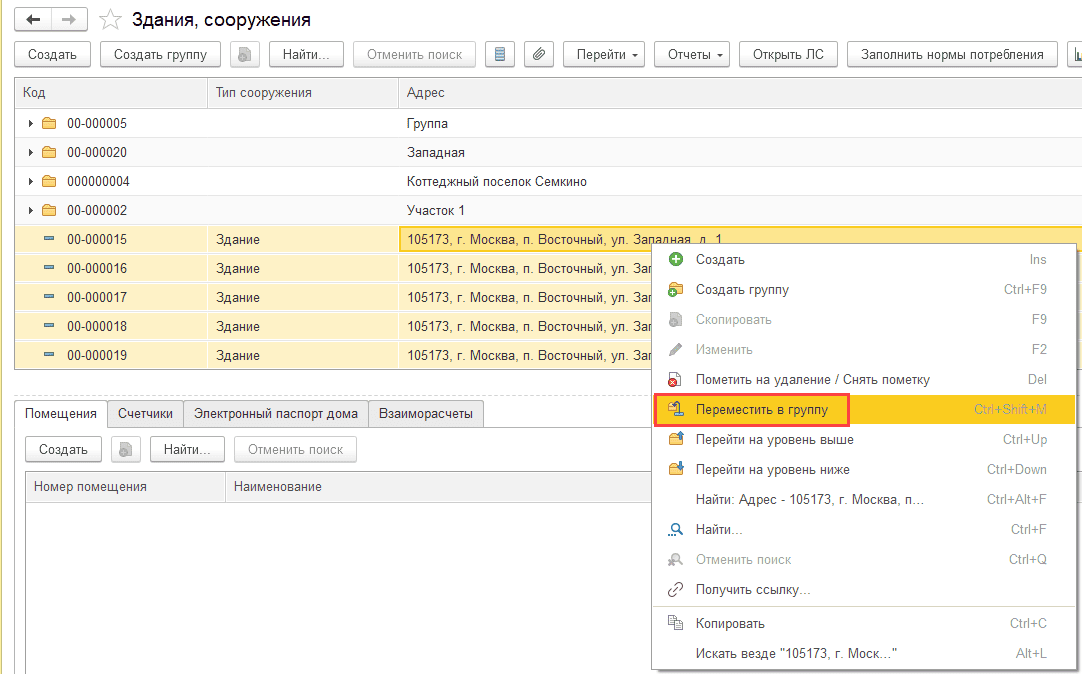 Таким образом, пользователь получает готовый набор объектов, находящихся в управлении, и готовых к дальнейшему заполнению данных для ведения учета в программе.