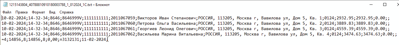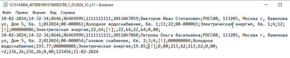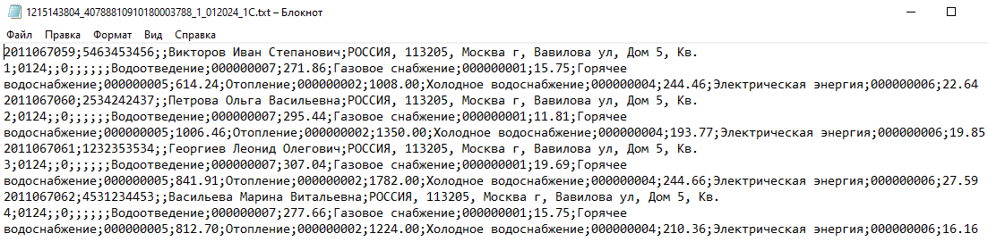 При загрузке сведений об оплатах определяется сумма по каждой услуге отдельно:
