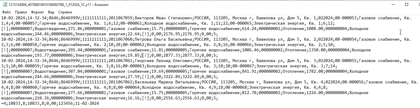Шаблон предназначен для обмена сведениями о суммах начислений и оплат по лицевому счету.