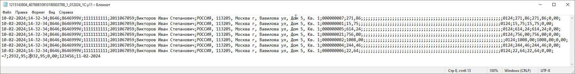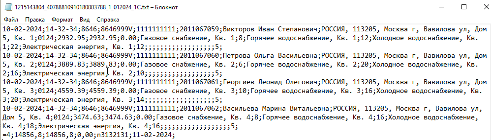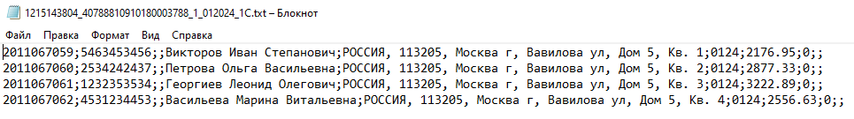 Формат шаблона аналогичен описанному выше шаблону 16_2 (с группировкой услуг), но каждая подуслуга по лицевому счету прописывается отдельной строкой.