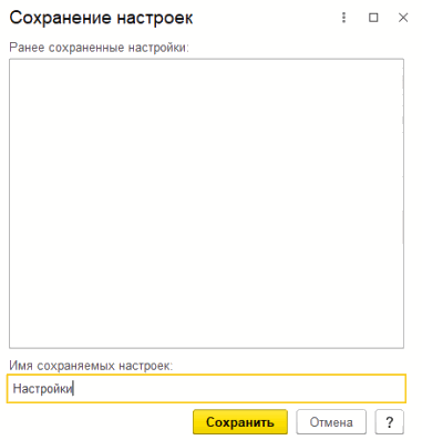 С помощью кнопки «Сохранить параметры...» можно сохранить значения полей формы. Сохраняются значения полей: