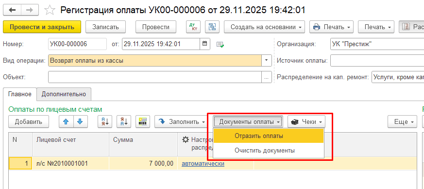 В данной инструкции рассматривается, как отразить возврат оплаты в блоке ЖКХ и как перенести оплату с одного лицевого счета на другой.