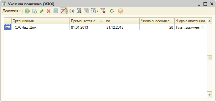 1. Настроить учетную политику ЖКХ (меню «Учет в ЖКХ – Учетная политика (ЖКХ)):