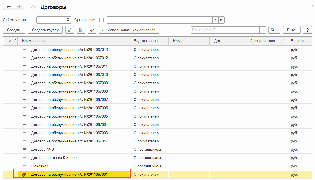 У лицевого счета должен быть указан контрагент и договор контрагента (не помеченные на удаление), указывается в документе «Управление сведениями для взаиморасчетов по лицевым счетам»: