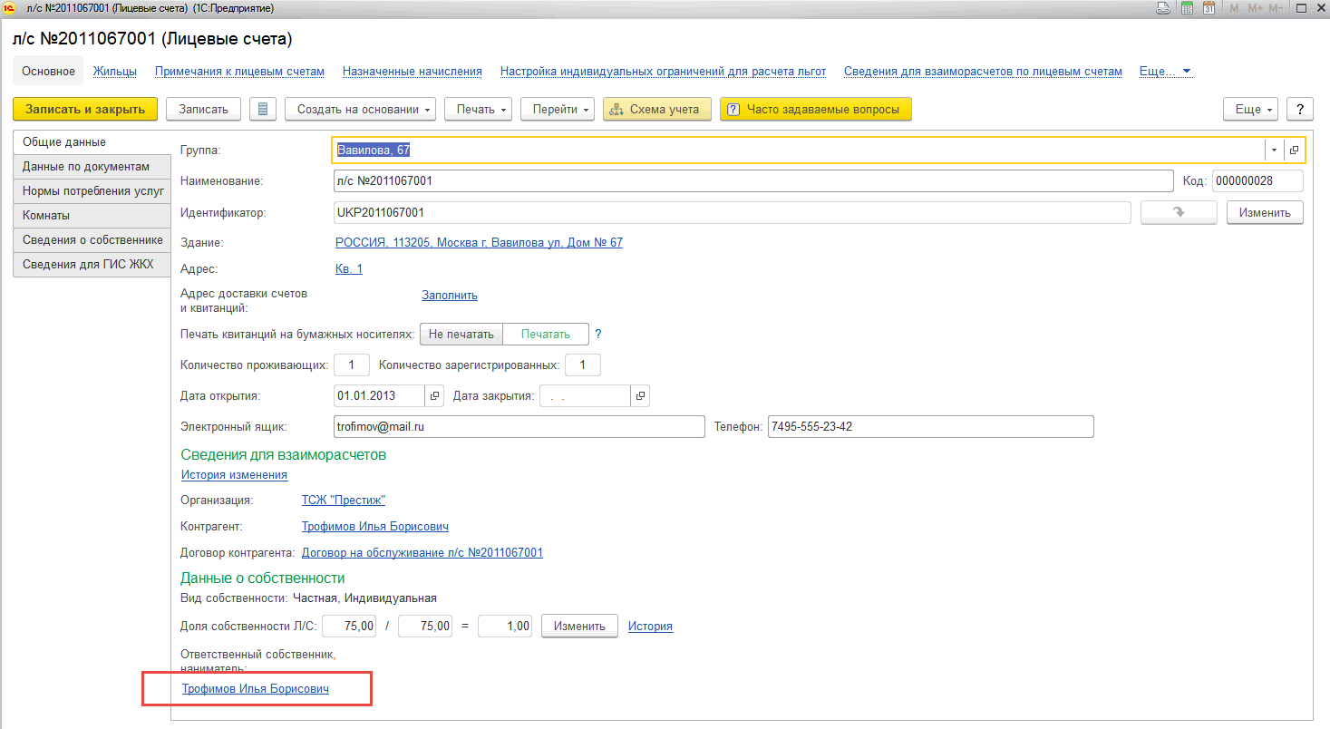 В данном случае есть идентификационные данные как по помещению, так и по лицевому счету