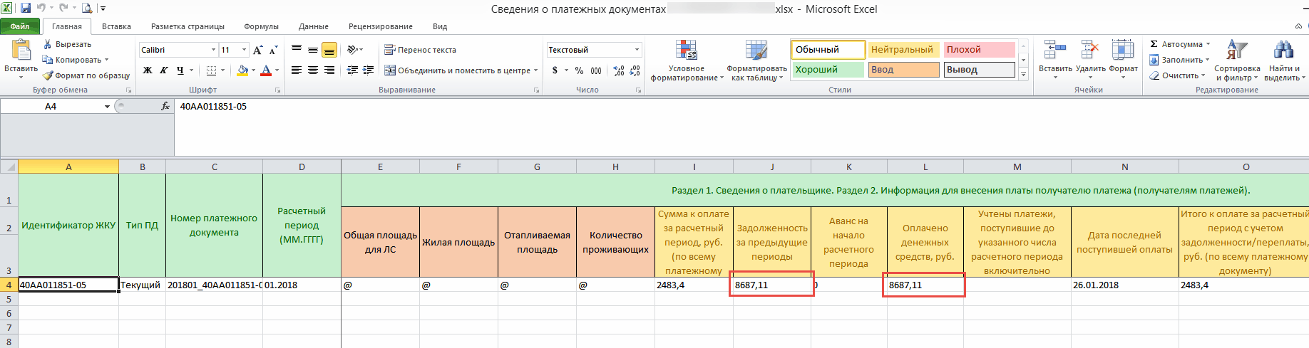 Сформировался файл со сведениями о платежных документах. Откроем этот файл: