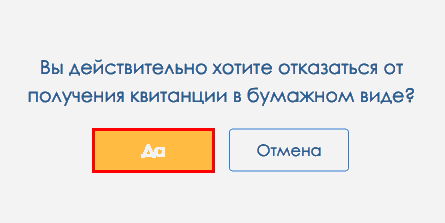 Нажимаем «Да», чтобы подтвердить отказ от получения бумажных квитанций.