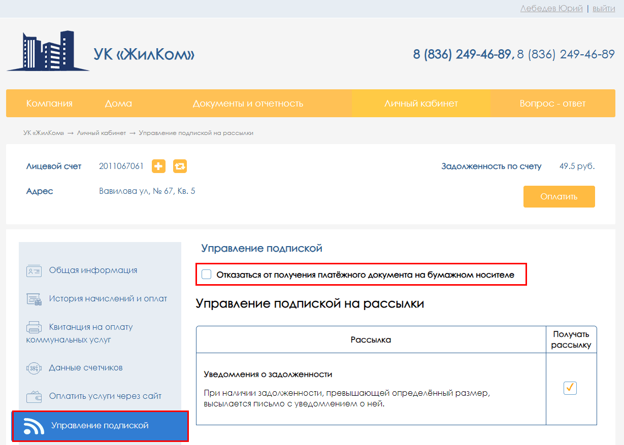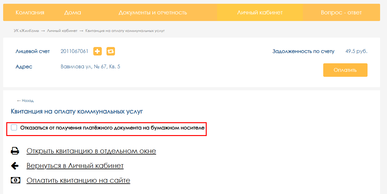 В личном кабинете 1С: Сайт ЖКХ можно настроить отказ или согласие на получение бумажного платежного документа. Рассмотрим, как это сделать.