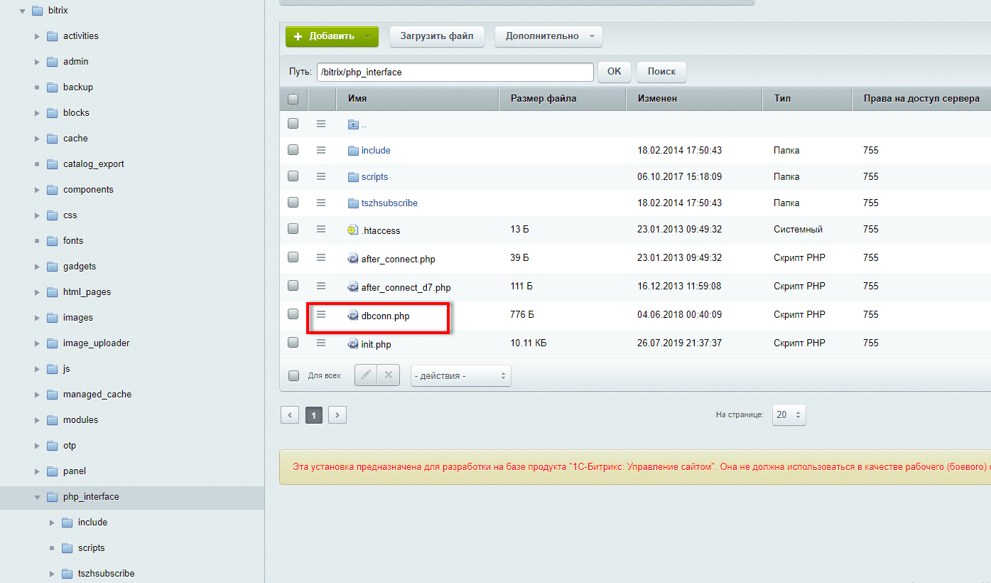 После сохранения копии файла dbconn.php открыть текущий файл на редактирование и добавить код: