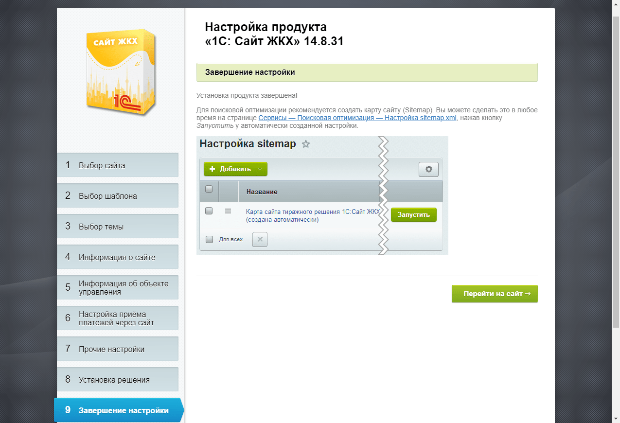 Далее следуйте инструкциям мастера создания Сайта ТСЖ / ЖКХ.