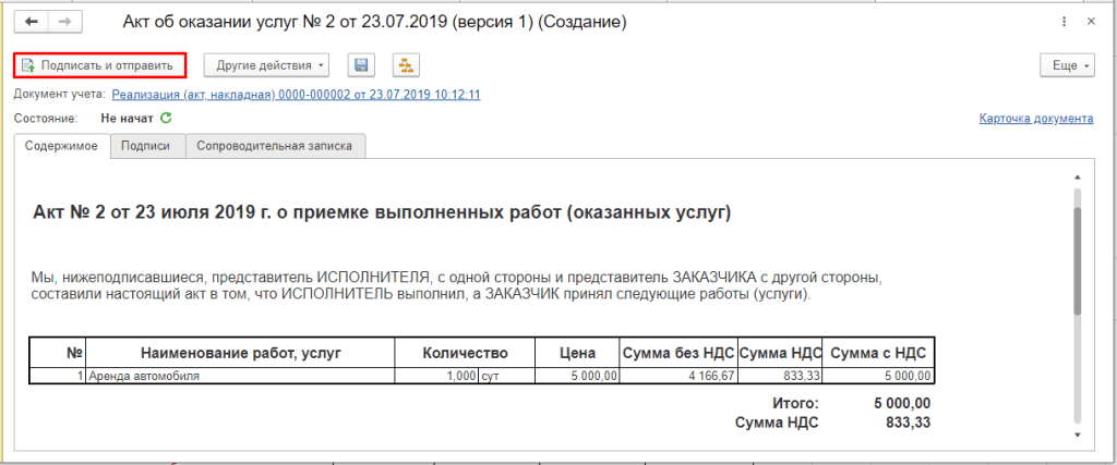 При выполнении команды Подписать и отправить из карточки электронного документа: