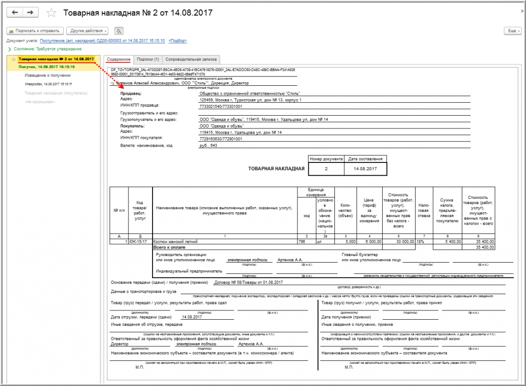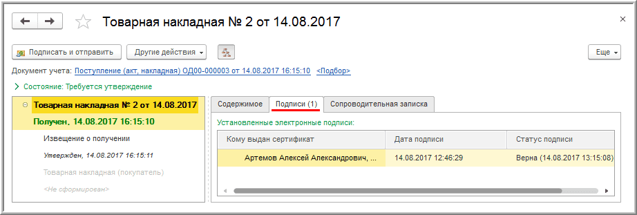 В зависимости от типа документа на основании полученного формализованного электронного документа может создаться новый документ учетной системы.