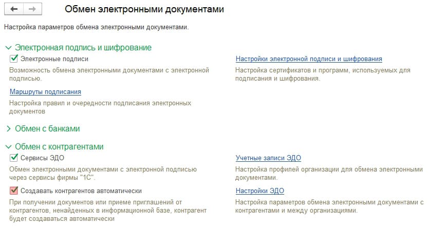 После этого соответствующая настройка появится в Настройках ЭДО.