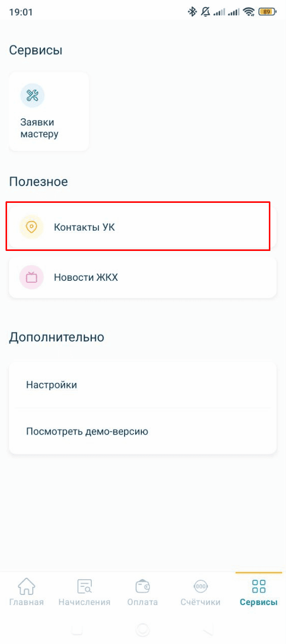 Как связаться с Управляющей организацией из приложения