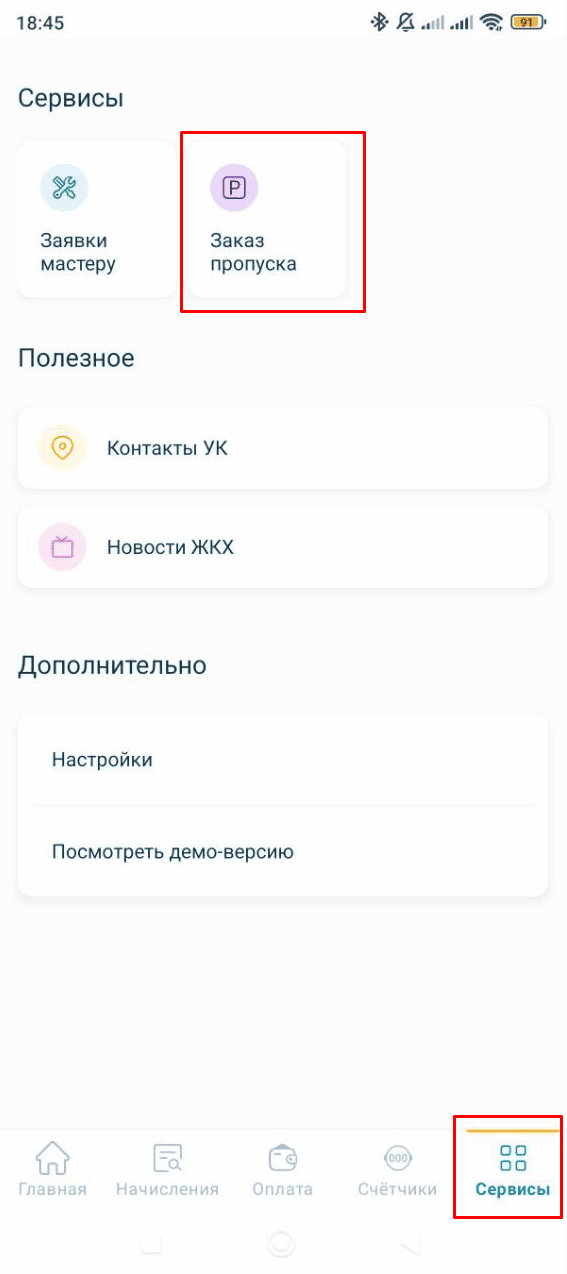 В приложении можно оставить заявку на проезд через Контрольно-пропускной пункт для гостя, такси или служебного авто (полиция, скорая помощь и т.п). Для этого:
