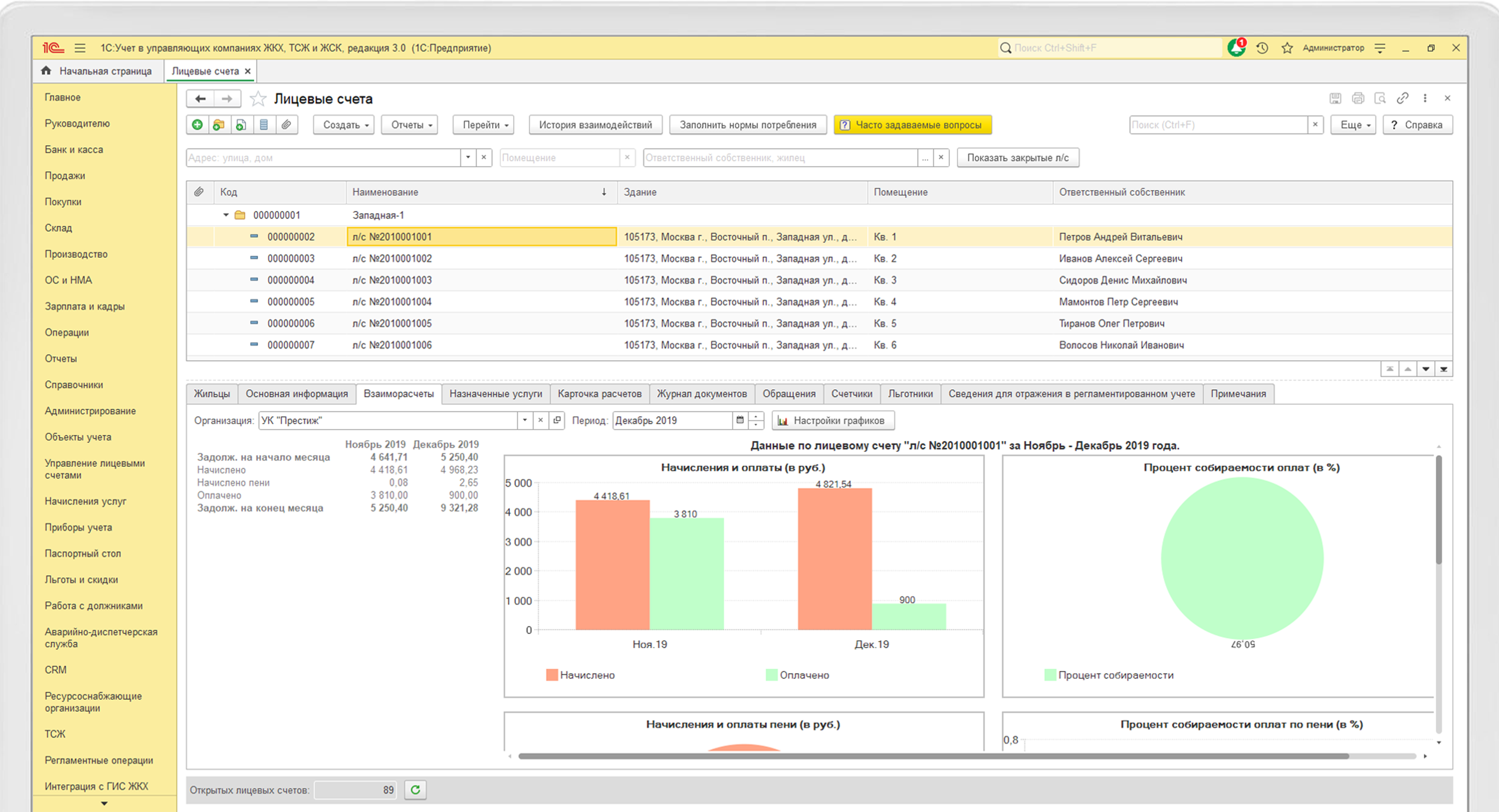 Автоматическое начисление коммунальных услуг в заранее выбранную дату с помощью «Мастера начислений». Настройка Мастера осуществляется один раз и существенно экономит время.
