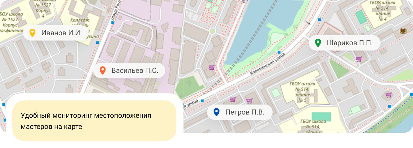 Работа с заявками: прием заявок от жильцов и их классификация, распределение заявок и передача в исполнение, контроль выполнения заявок, отчетность.