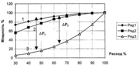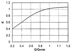 Анализ эффективности работы насоса при снижении подачи меньше номинального значения показывает, что при малых расходах увеличиваются удельные затраты электрической энергии на подачу 1 м3 воды вследствие снижения КПД насоса. Необходимо при малой подаче переходить на использование насосов с меньшей производительностью (рис. 20) либо использовать аппаратуру частичного регулирования скорости насосов.