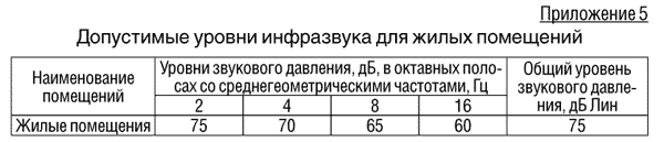 6.3.3. Допустимые уровни инфразвука для жилых зданий и на территории жилой застройки приведены в приложении 5 к настоящим санитарным правилам.