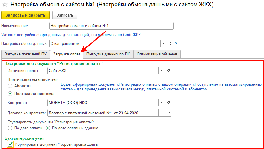 Подробнее с настройками загрузки платежей с сайта ЖКХ можно ознакомиться в инструкции.