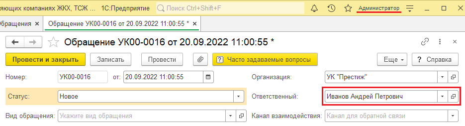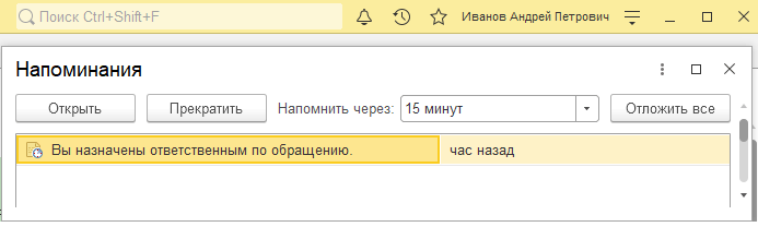 Теперь, если при создании или изменении обращения ответственным будет указан другой сотрудник, то ему автоматически будет отправлено уведомление о назначении обращения.