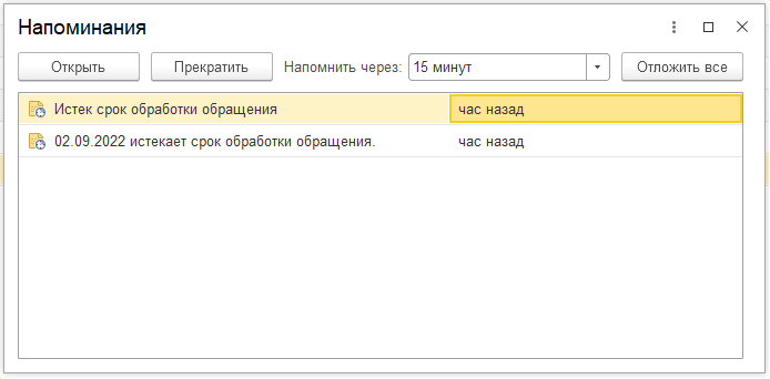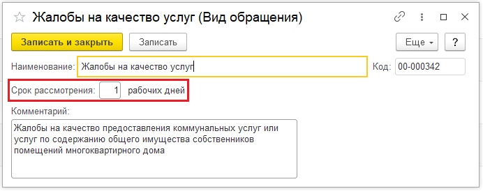Для автоматического отслеживания сроков необходимо указать сроки рассмотрения в справочнике «Виды обращений».