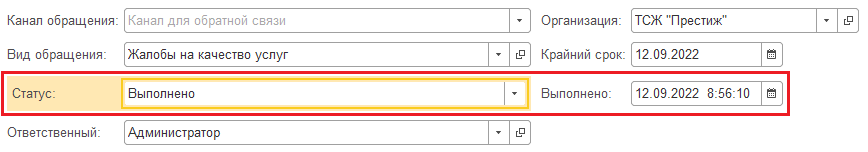 Также для каждого обращения автоматически фиксируется дата его выполнения.